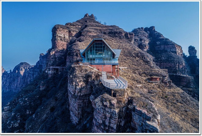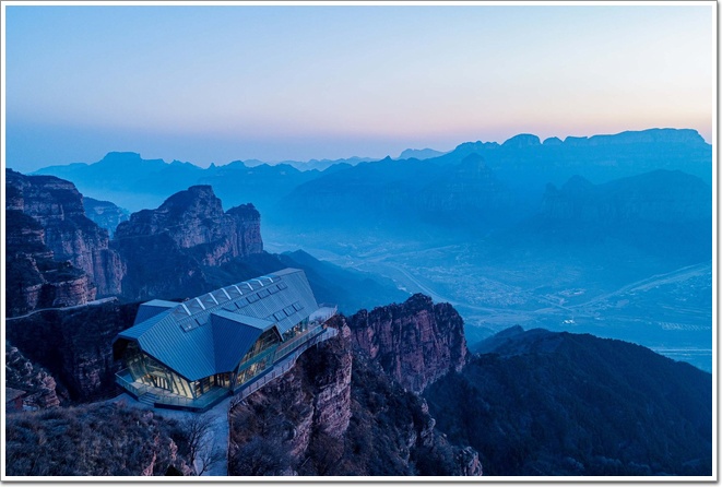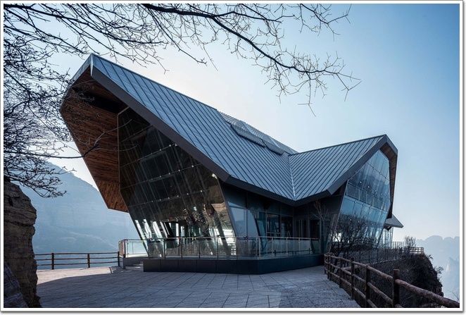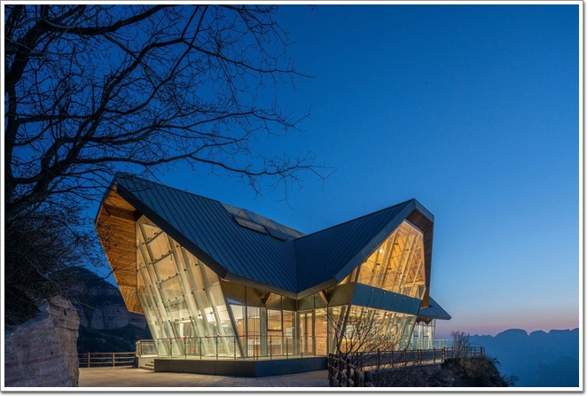 鈦鋅板+玻璃,幕墻裝扮太行山上絕美“懸崖餐廳”